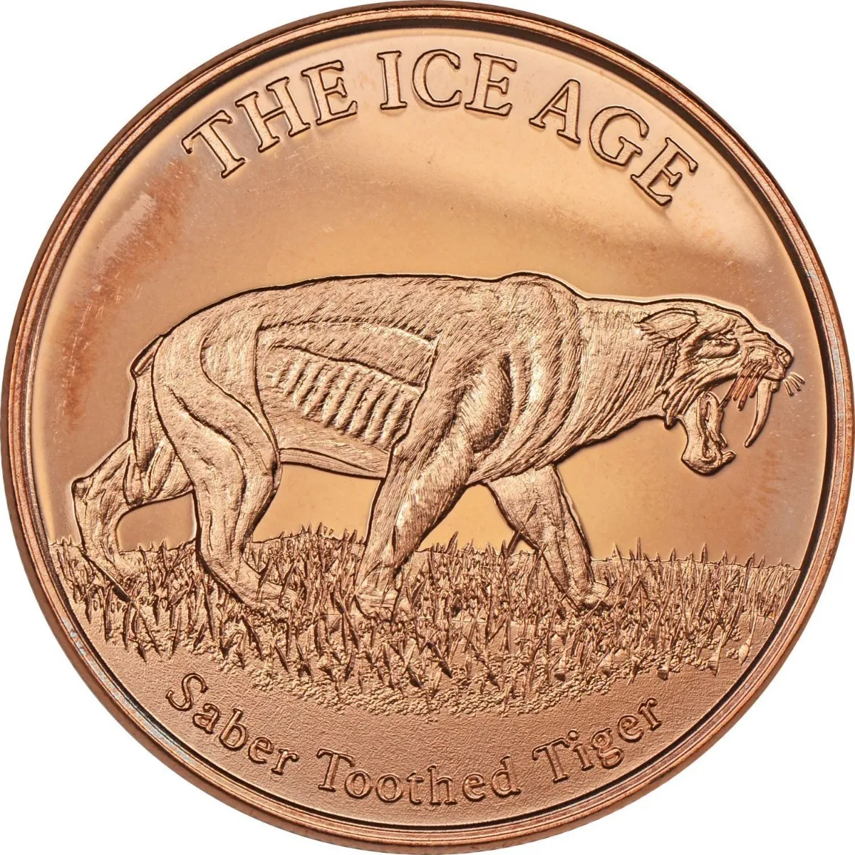 Robmar-USA-Moneda De Cobre Puro 24k 0,999-N°609 “Ice Age Tiger”. Pieza temática prehistórica