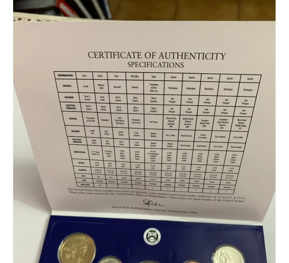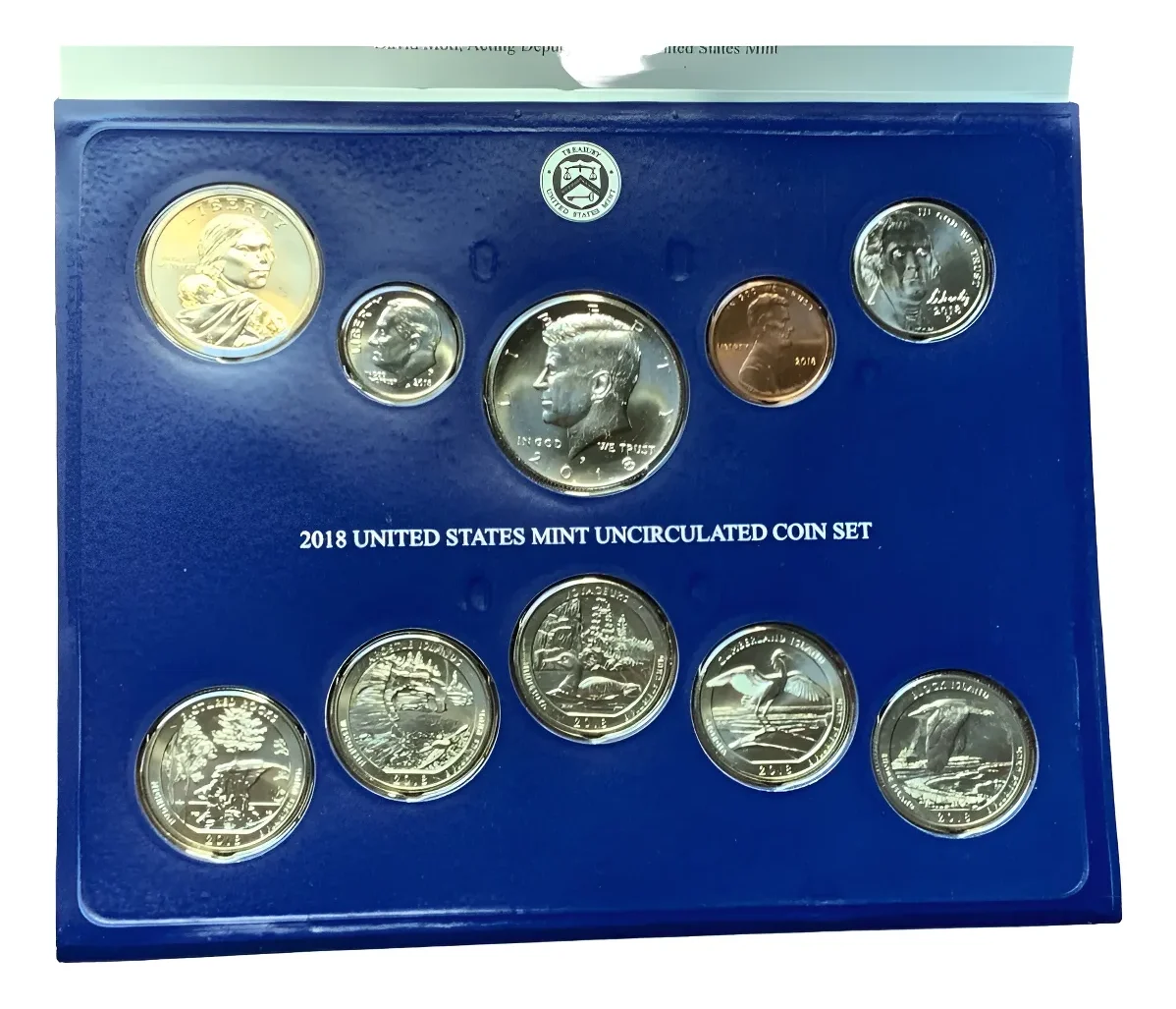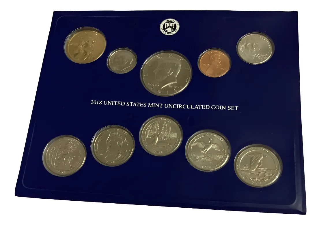 Blister con 10 monedas USA todas del 2018. Colección anual completa en presentación oficial.directo de la casa de la moneda sin circular todos los valores faciales de ese año