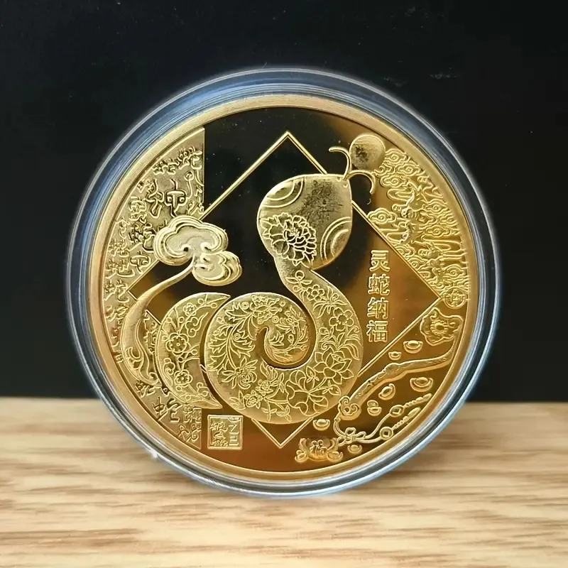 Monedas temáticas con 4 diseños diferentes de serpientes, a elegir por unidad. Ideal para coleccionistas de reptiles y simbolismo.y bañada en oro 24k.mas capsula protejiendolas