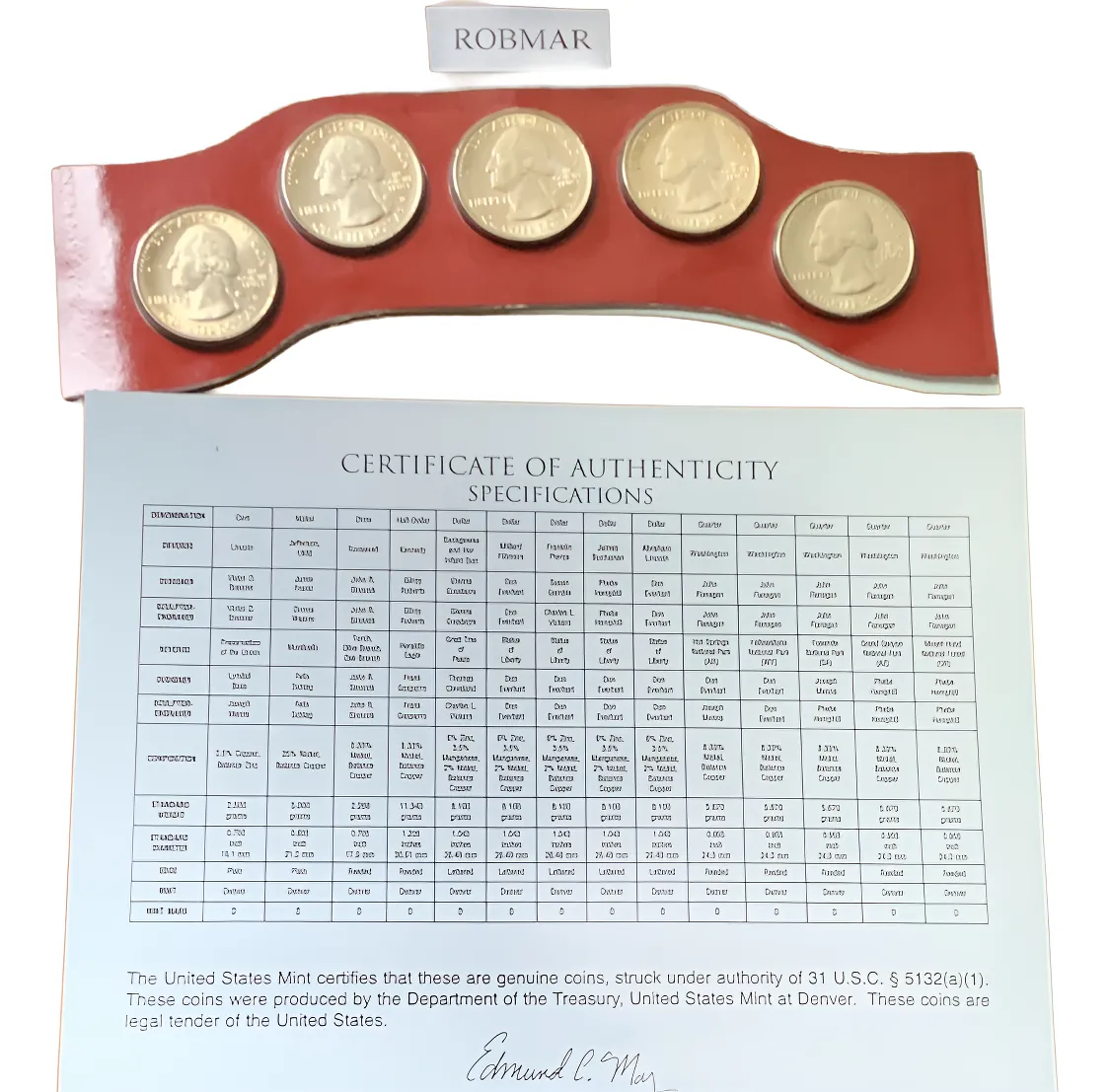 Set de 5 quarter 2010 ceca P satinado. Parques nacionales como Hot Springs, Yellowstone, Grand Canyon, Mt. Hood y Shenandoah.