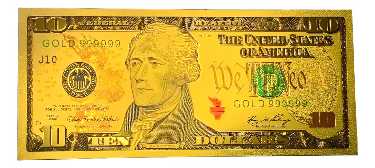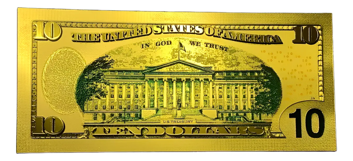Robmar-USA-Billete U$s 10 Plástico Bañado Oro 24 K.-oferta