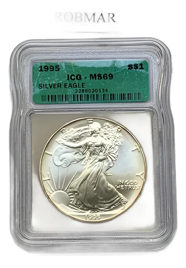Producto sellado en blister, 1 onza plata 24k, USA, edición 1995 (10º emitido). Pieza en formato perfecto para inversión y colección.