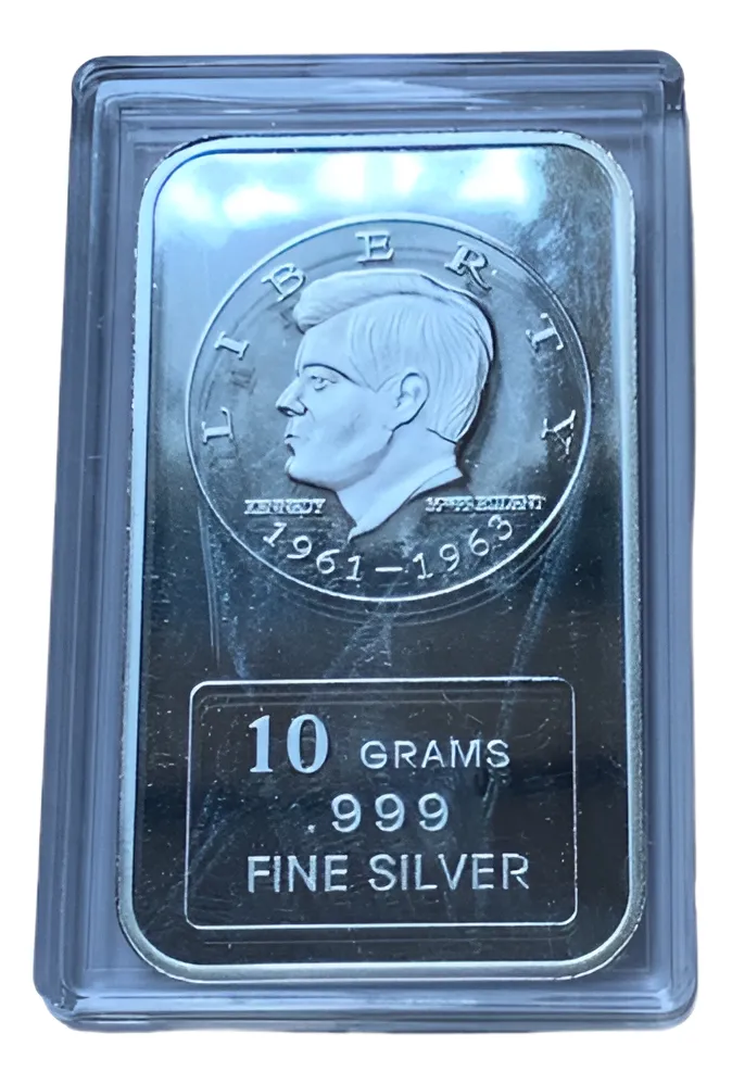 ROBMAR-USA-LINGOTE DE 10 GRAMOS DE PLATA PURA 24K.N°142–retrato de Kennedy