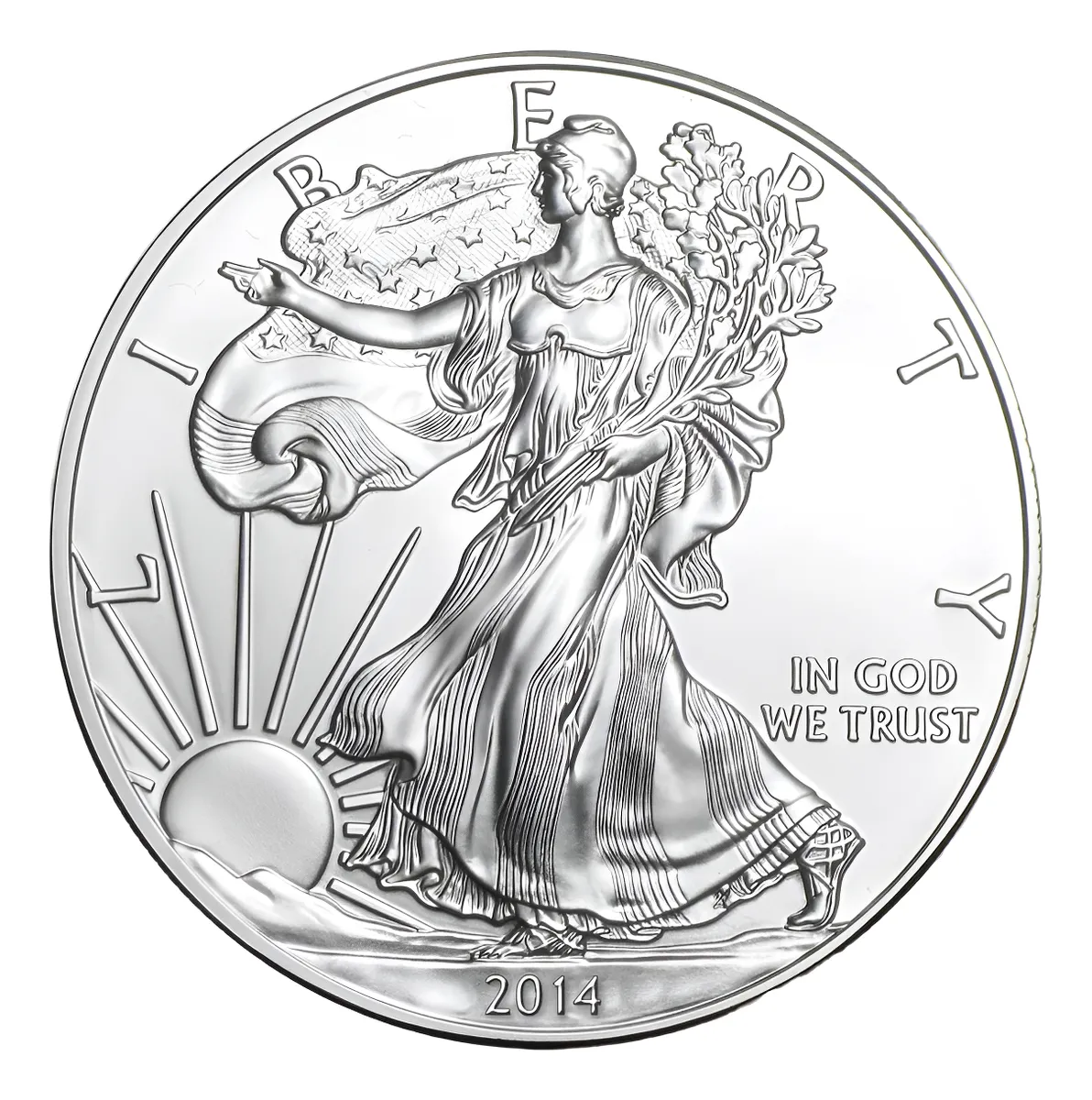 American Silver Eagle 2014, 1 onza plata 0,999, con estuche de presentación directo de la casa de la moneda de usa. Opción ideal como regalo y como onza de inversión con packaging original.