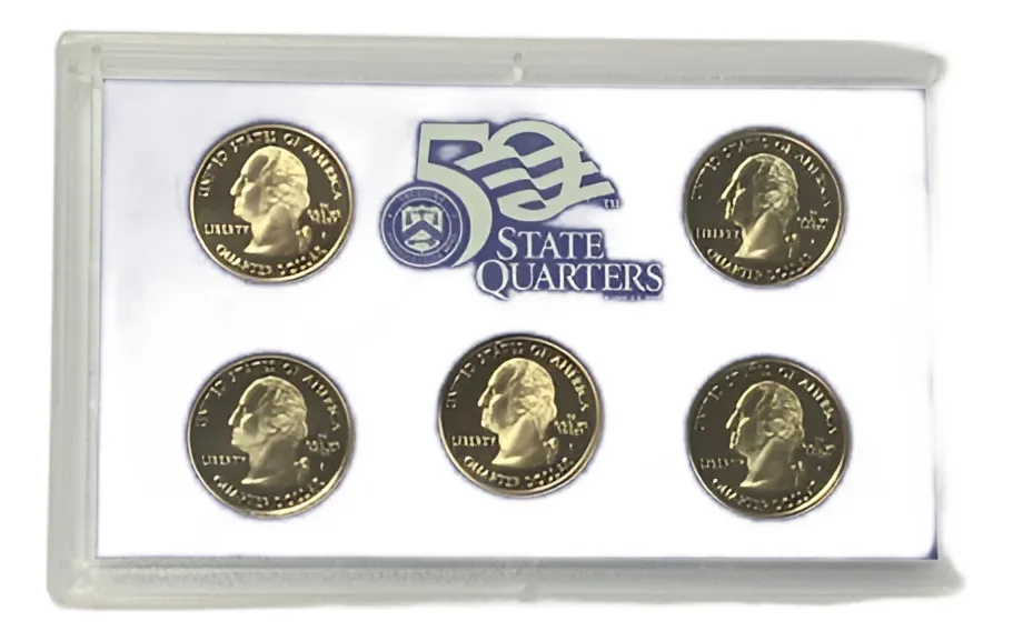 Set USA con 5 monedas de quarter-25 cents satinados, muy difÃcil y de poca emisión en 1 estuche sellado. Colección completa de lo emitido en este año de alta calidad numismática brillo espejo y valor a largo plazo. Excelente opción.​ si le falta alguna otra de año similar consulte tenemos desde el 1968 en adelande y si la tenemos podrá ir completando su colección por fecha de este valor facial, también tenemos de otros valores faciales si no lo encuentra publicados consulte por si tenemos stock asà va completando su colección por tipo o por año, tenemos mucho stock numismático para ofrecer de distintos paÃses aparte de los publicados​​