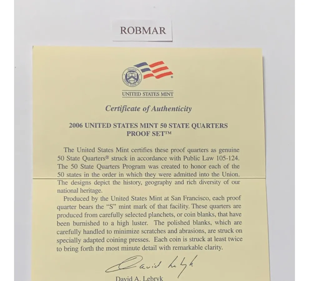 Robmar-USA-Estuche De 5 Monedas de quarter 25 cents satinados-2006-1 Blister Sellados