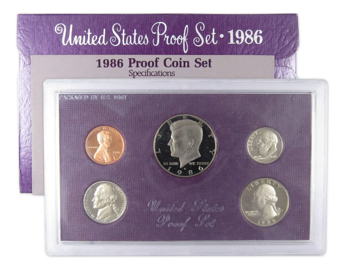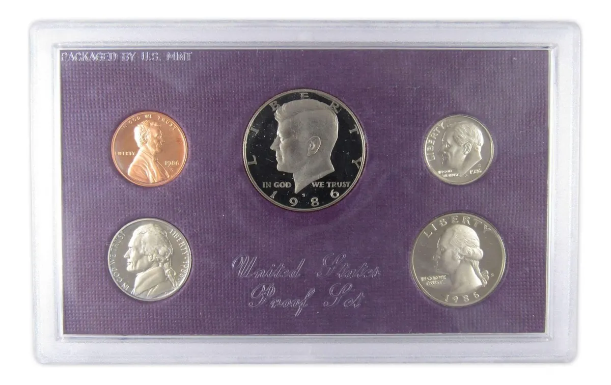 Robmar-USA-blister de 5 monedas de curso legal del año-1986 proof (S) la ceca de san francisco y brillo espejo