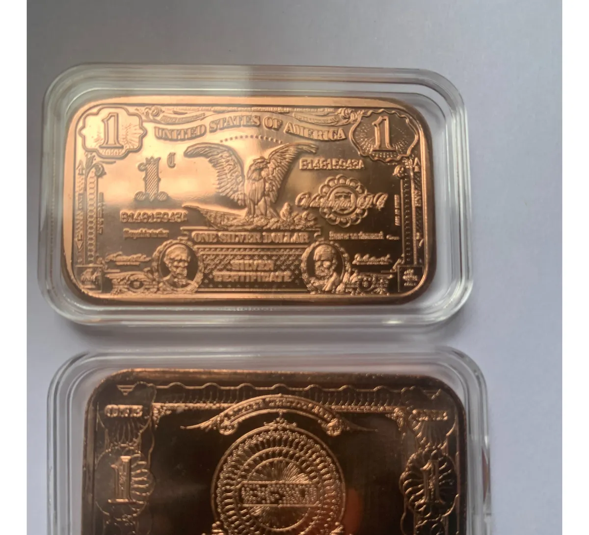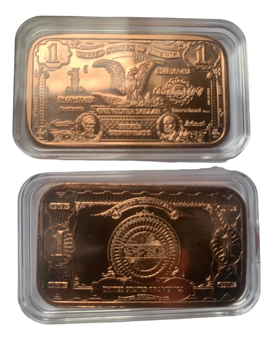 Robmar-USA-Lingote de cobre puro 24K.-0,999-motivo 1 billete de u$s1