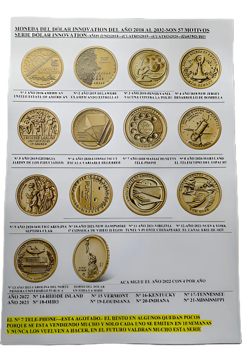 ROBMAR-USA-El Programa de Monedas de $ 1 de Estados Unidos Mint American Innovation es una serie de varios años para honrar la innovación y los innovadores mediante la emisión de monedas de $ 1 para cada uno de los 50 estados, el Distrito de Columbia y los cinco territorios de los Estados Unidos: Puerto Rico, Guam, Samoa Americana, Islas VÃrgenes de los Estados Unidos y las Islas Marianas del Norte…Cuatro nuevas monedas de $ 1 con diseños distintivos en reversa se lanzarán cada año desde 2019 hasta 2032 en el orden en que los estados ratificaron la Constitución de los Estados Unidos o fueron admitidos en la Unión. Una vez que se emita una moneda para cada estado, se lanzarán monedas para el Distrito de Columbia y los territorios…..El anverso común (lado de la cabeza) de todas las monedas en esta serie presenta una representación dramática de la Estatua de la Libertad y las inscripciones requeridas «$ 1» y «EN DIOS CONFIAR EN LA CONFIANZA»….El diseño del reverso (lado de las colas) presenta una imagen o imágenes emblemáticas de una innovación significativa, un innovador o un grupo de innovadores de uno de los 50 estados, el Distrito de Columbia o los territorios; el nombre del estado, el Distrito de Columbia o territorio, según corresponda; y la inscripción requerida «Estados Unidos de América»….Las monedas de esta serie mostrarán el año de acuñación o emisión, la marca de la menta y «E PLURIBUS UNUM» en el borde de las monedas….Moneda de 2018..Se lanzará una moneda especial estadounidense de $ 1 para la Innovación que se emitirá en 2018 para presentar esta nueva serie. El anverso de la moneda presenta el mismo diseño anverso común que todas las demás monedas de la serie. El diseño inverso presenta una representación de la firma del presidente George Washington en la primera patente de EE. UU. Emitida el 31 de julio de 1790.