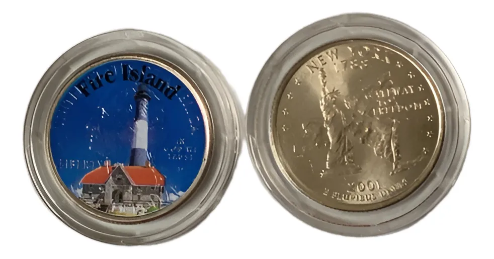 Moneda nĂşmero 17 de Nueva York, Faro de Fire Island. Un diseño patriĂłtico que refleja la historia marĂtima del estado,Â