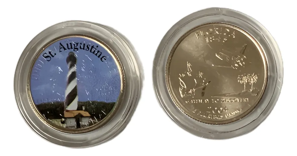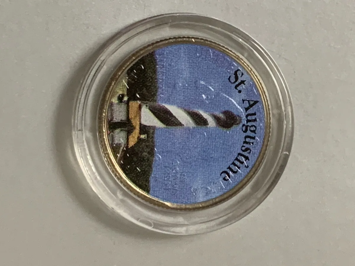 Moneda nĂşmero 23 usada, Florida, representando el Faro de St. Augustine. ideal para completar series marĂtimas.