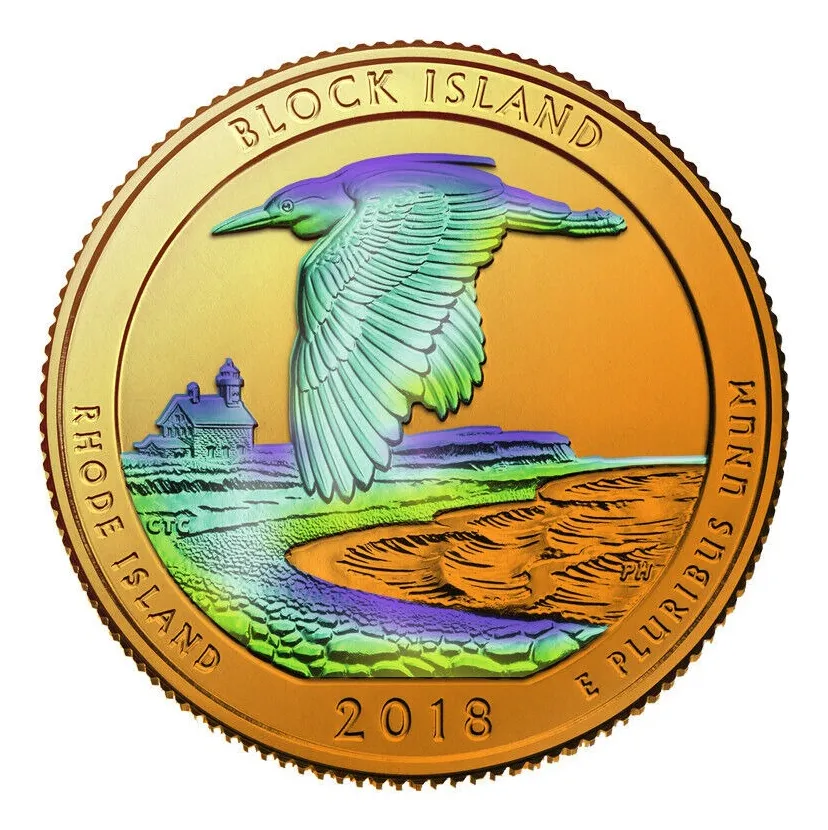 Quarter 2018 Block Island National Wildlife Refuge, baño oro 24k y óleo . de la serie parques.