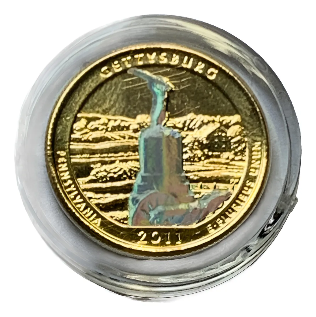 Moneda quarter Gettysburg 2011, edición bañada en oro y óleo, con detalles