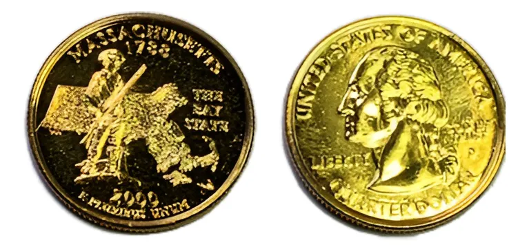 Robmar-USA-Quarter Bañado En Oro 24k-2000-Massachusetts