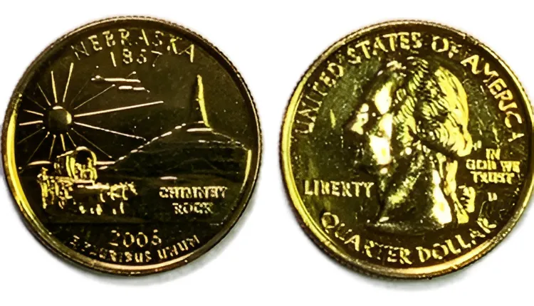 Quarter de Nevada 2006 recubierto en oro 24K, usado, que muestra los caballos salvajes y la Sierra Nevada. Aporta historia y cultura del oeste