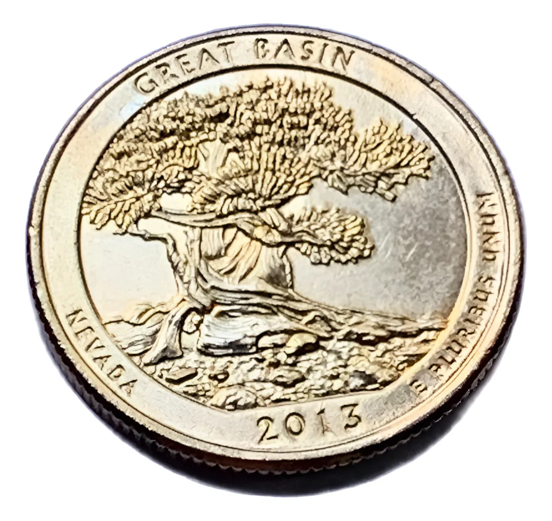 Quarter Great Basin 2013 N°18, oro 24k. Árbol solitario en paisaje desértico