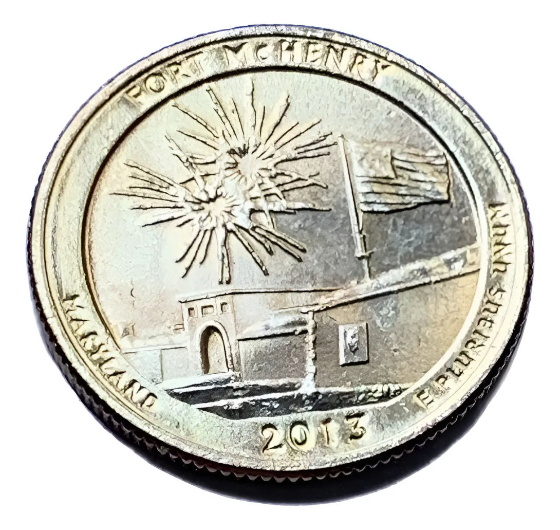 Quarter USA 2013, número 19, Fort McHenry, baño de oro 24k.