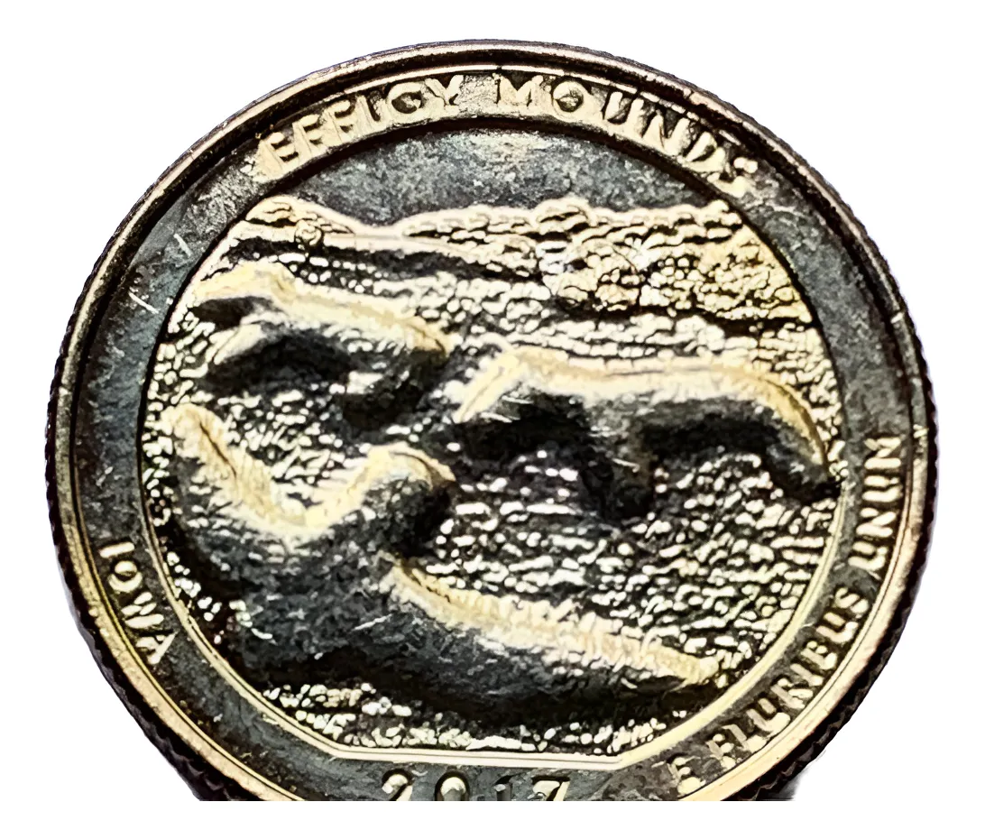 Quarter 2017 Effigy Mounds N°36, recubierto oro 24k. Pieza con temática nativa americana en acabado premium.