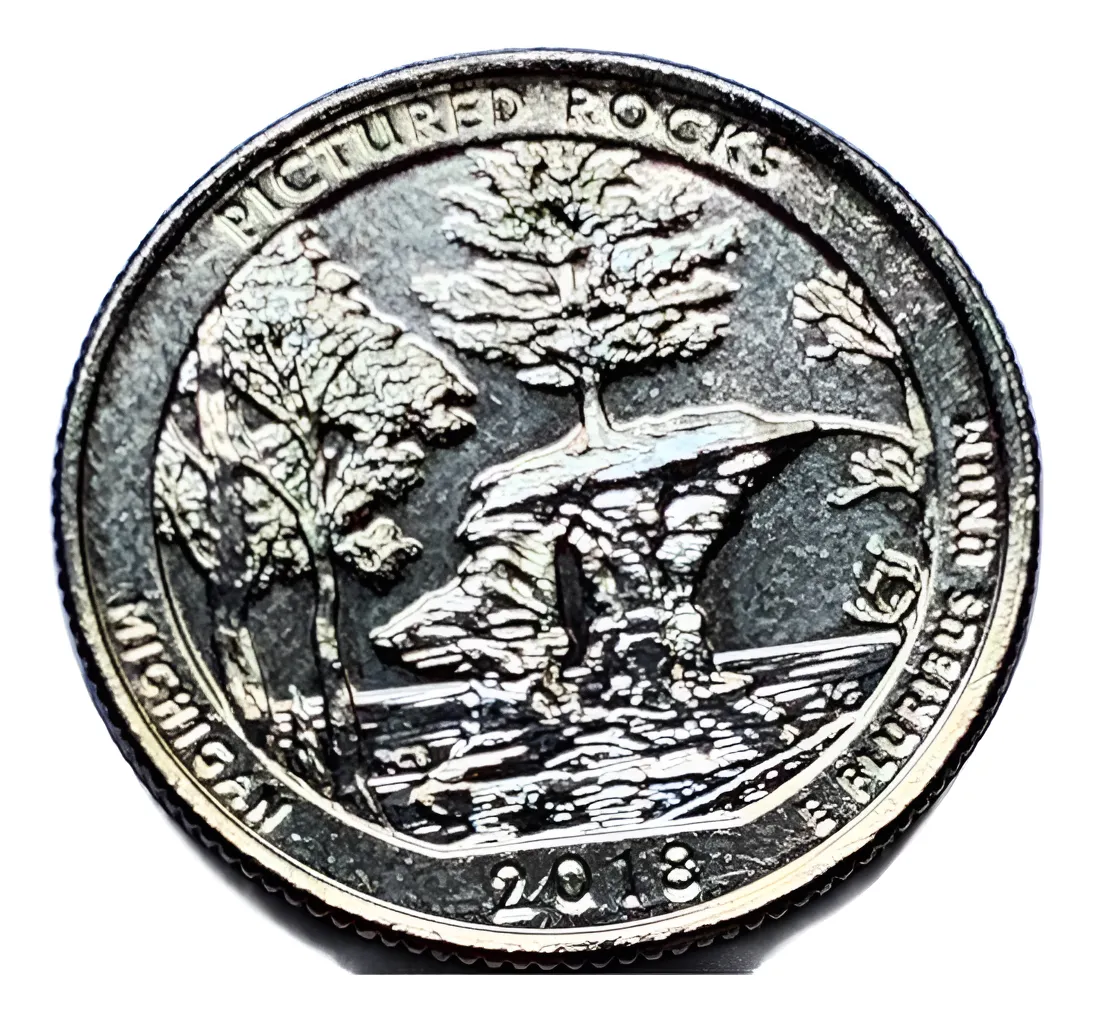 Segundo quarter Pictured Rocks 2018 N°41, baño oro 24k. Acantilados de Michigan