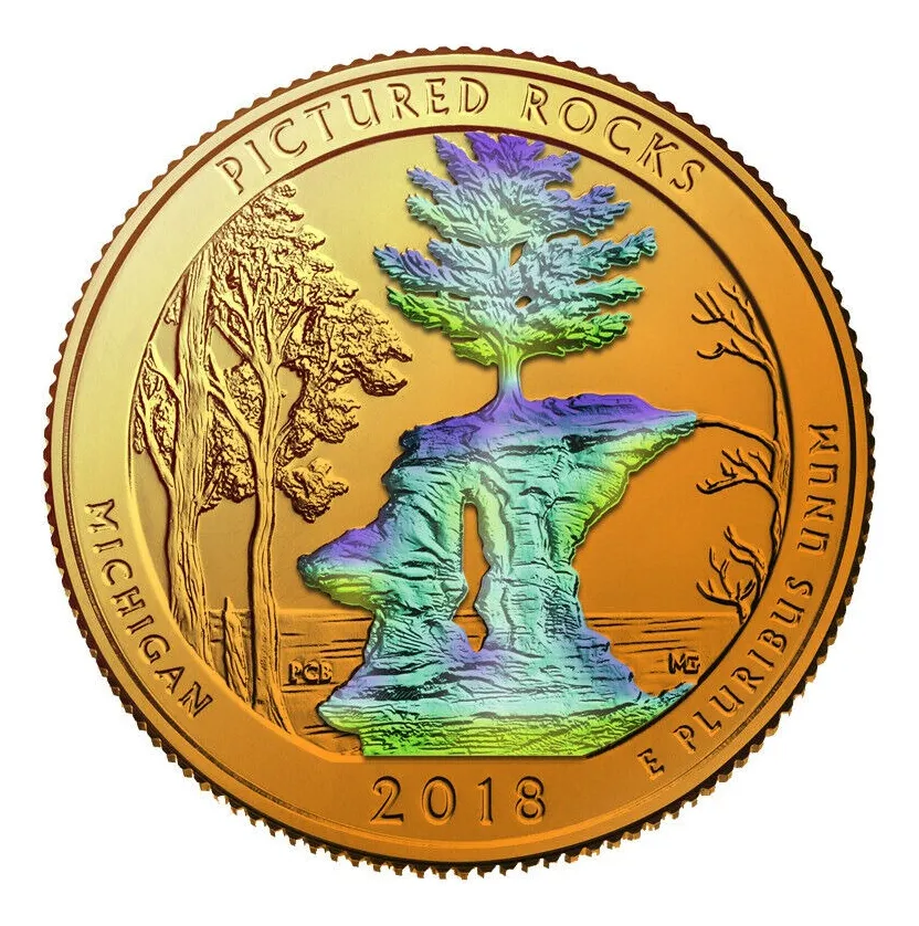 Quarter parques 2018 Pictured Rocks, bañado en oro 24k y acabado óleo a color.