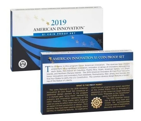 Set USA de 4 monedas American Innovation 1 dólar 2019-S, acabado proof. Colección moderna muy buscada por su alto detalle y bajo tiraje.serie que salio en 1918 y se emitira hasta el 2032, seran 56 motivos diferentes de patentes, fisicos, o innovaciones producidas en usa, y las conmemoran cada una en especial estan hechas en un proseso expecial que quedan como brillo espejo por su pulido y se emiten pocas unidas en la ceca de san francisco muy buscada por coleccionista porque se emite un motivo cada 3 meses y nunca se volveran a emitir por lo tanto a medida que valla pasando el tiempo se incorporaran en poder de numismaticos y seguidores de esta serie provocando cada vez mas dificiles de conseguir, agrandando su valor numismatico, tenemos los primeros 23 motivos emitidos conalgunos agotados por la demanda, consulte por el stock disponible y por los que estan publicados