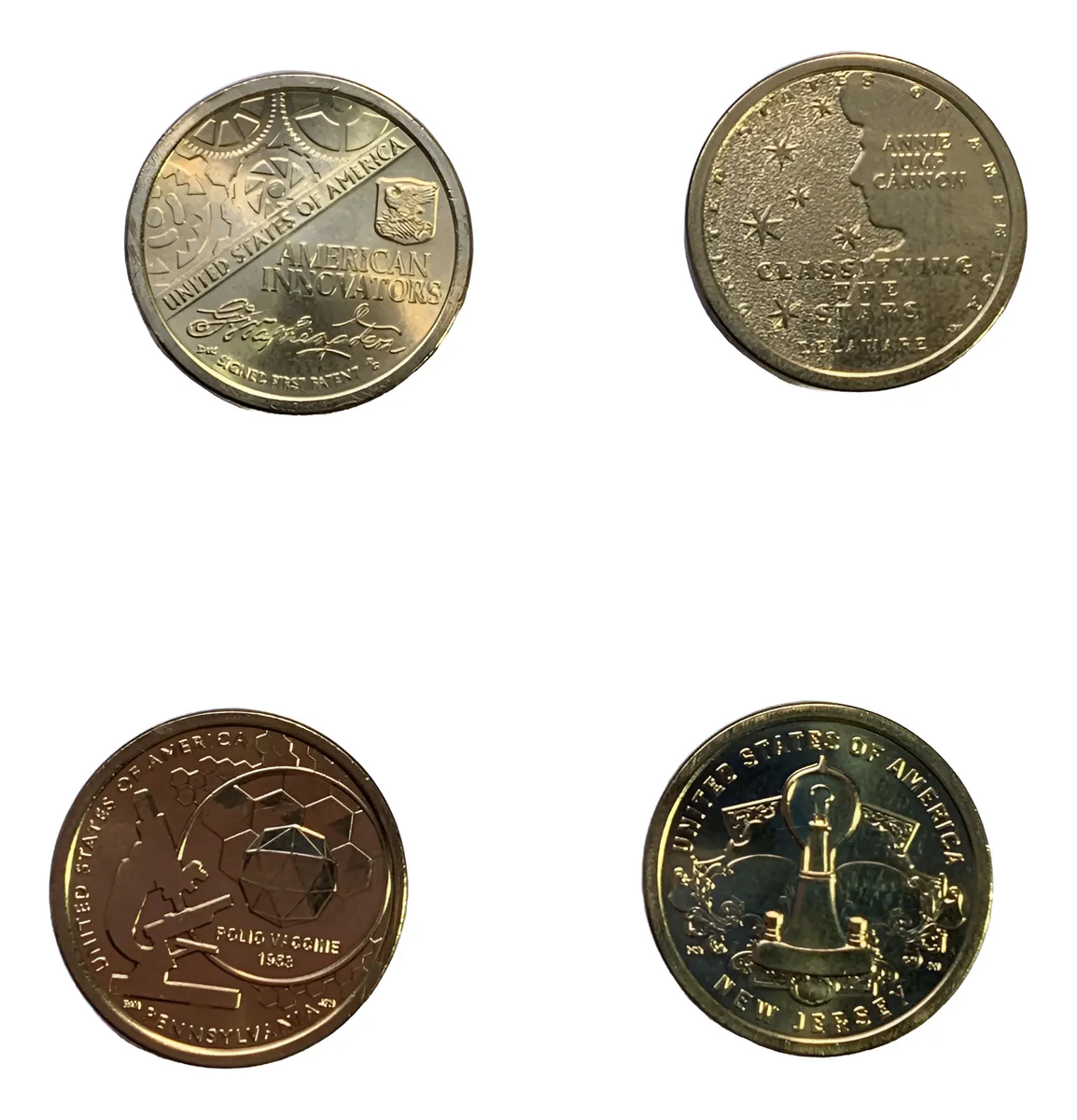 Set de 4 dólares American Innovation cubriendo 1918–1919. Inicio cronológico de la serie de innovación tecnológica USA.