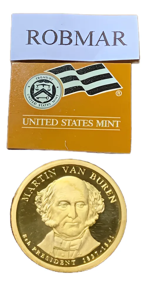 Moneda conmemorativa proof S, presidente Martin Van Buren, año 2008. Piezas exclusivas en la serie presidencial, garantÃa de autenticidad y edición.